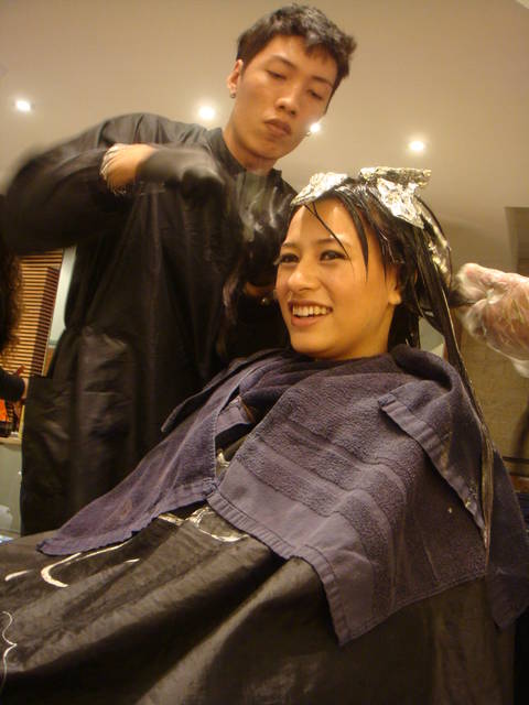 三個人在髮廊花了一整天的時間,屁股坐到都要開花。